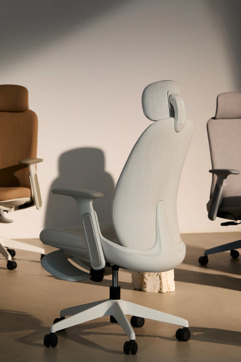 AURA 採用 羊毛紋理質感的透氣網布,兼具柔軟度、支撐性與高透氣性,長時間坐也不悶熱。